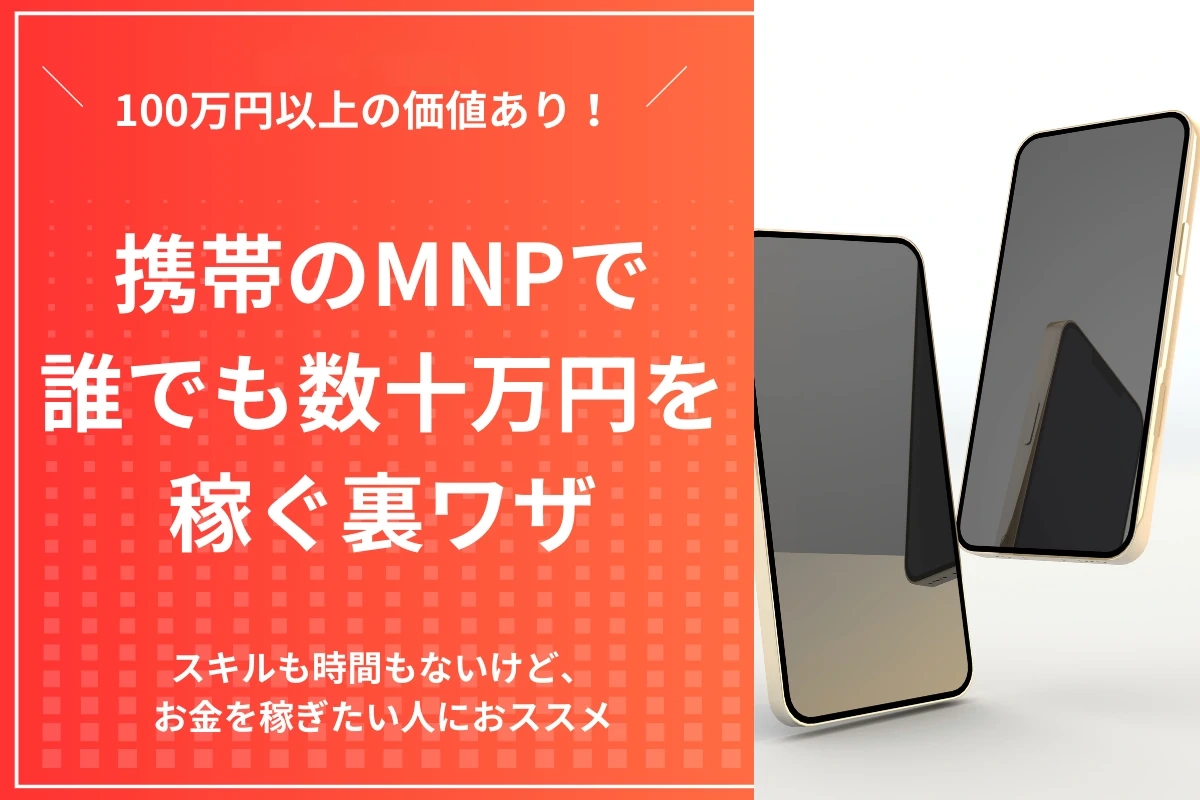 また、下手にMNPをやると二度と携帯が持てなくなることがあります。 - しかし、そういったリスクを排除して、安定的にMNPで毎月現金を手にする方法を、今回に限り教えます。