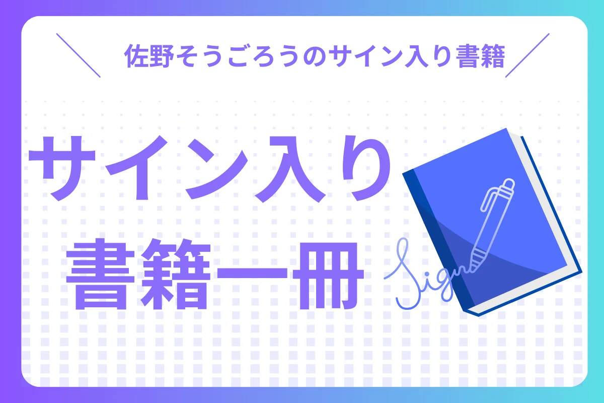 - 佐野そうごろうのサイン入り書籍を出版パーティにてお渡しします。