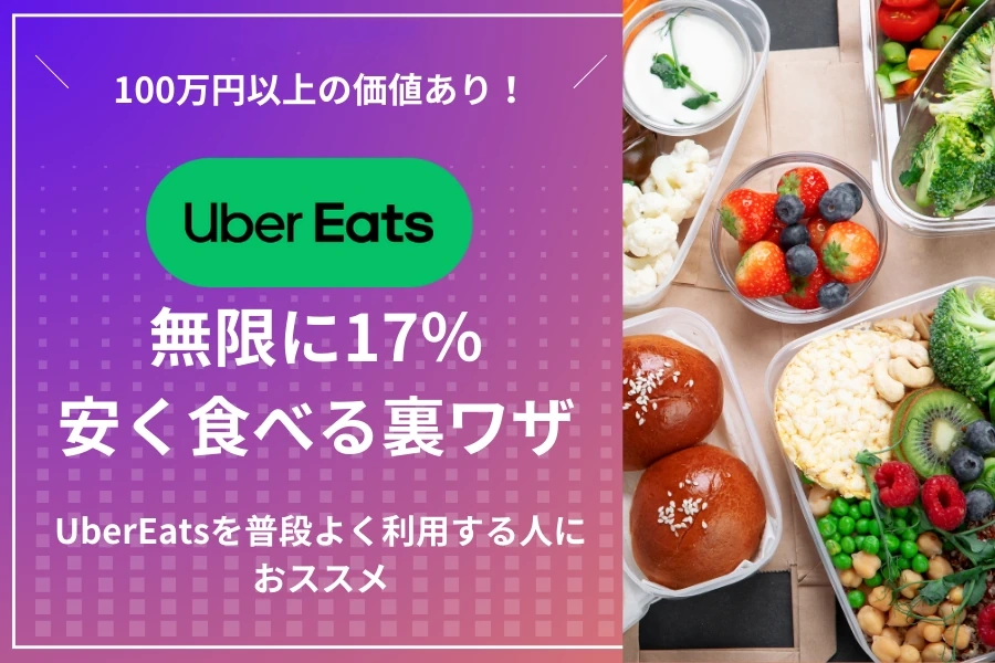 - 例えば、UberEatsで月に5万円を払っている人であれば、この裏ワザを使うことで17%分の8,500円を浮かせることができます。